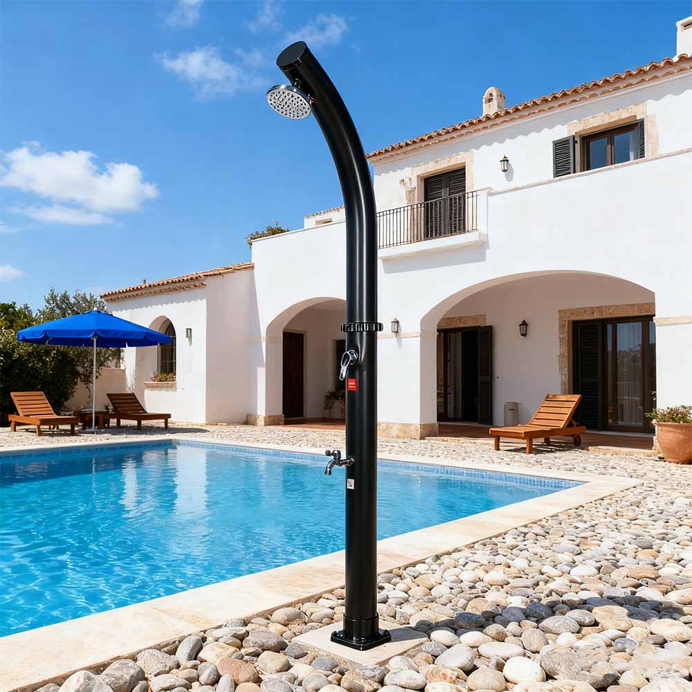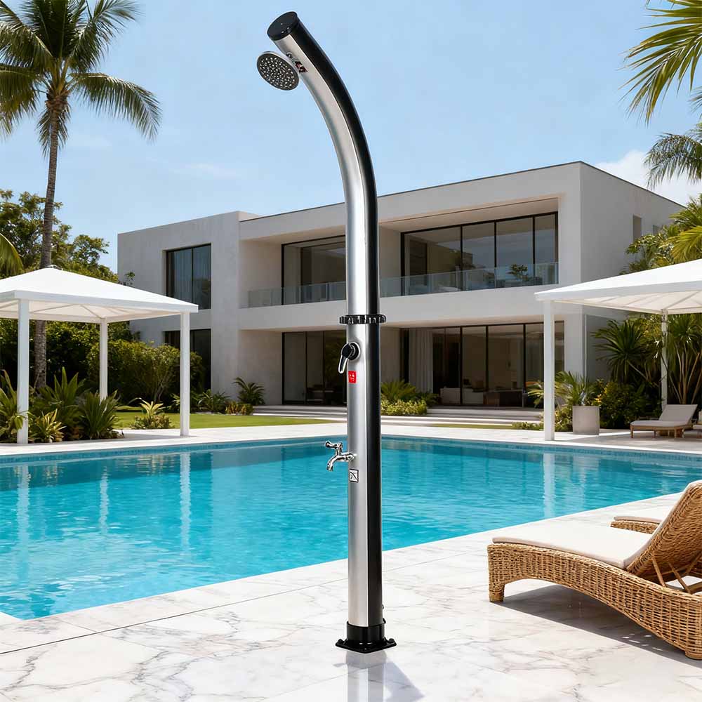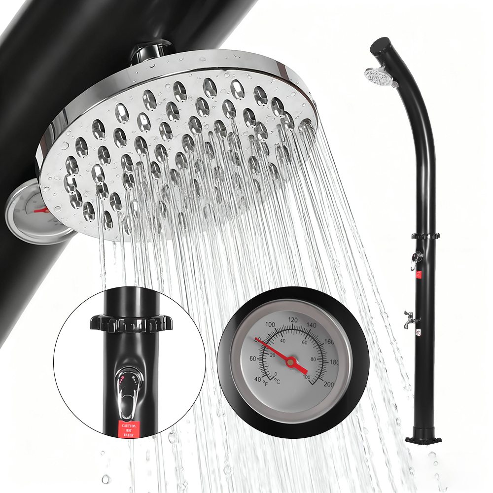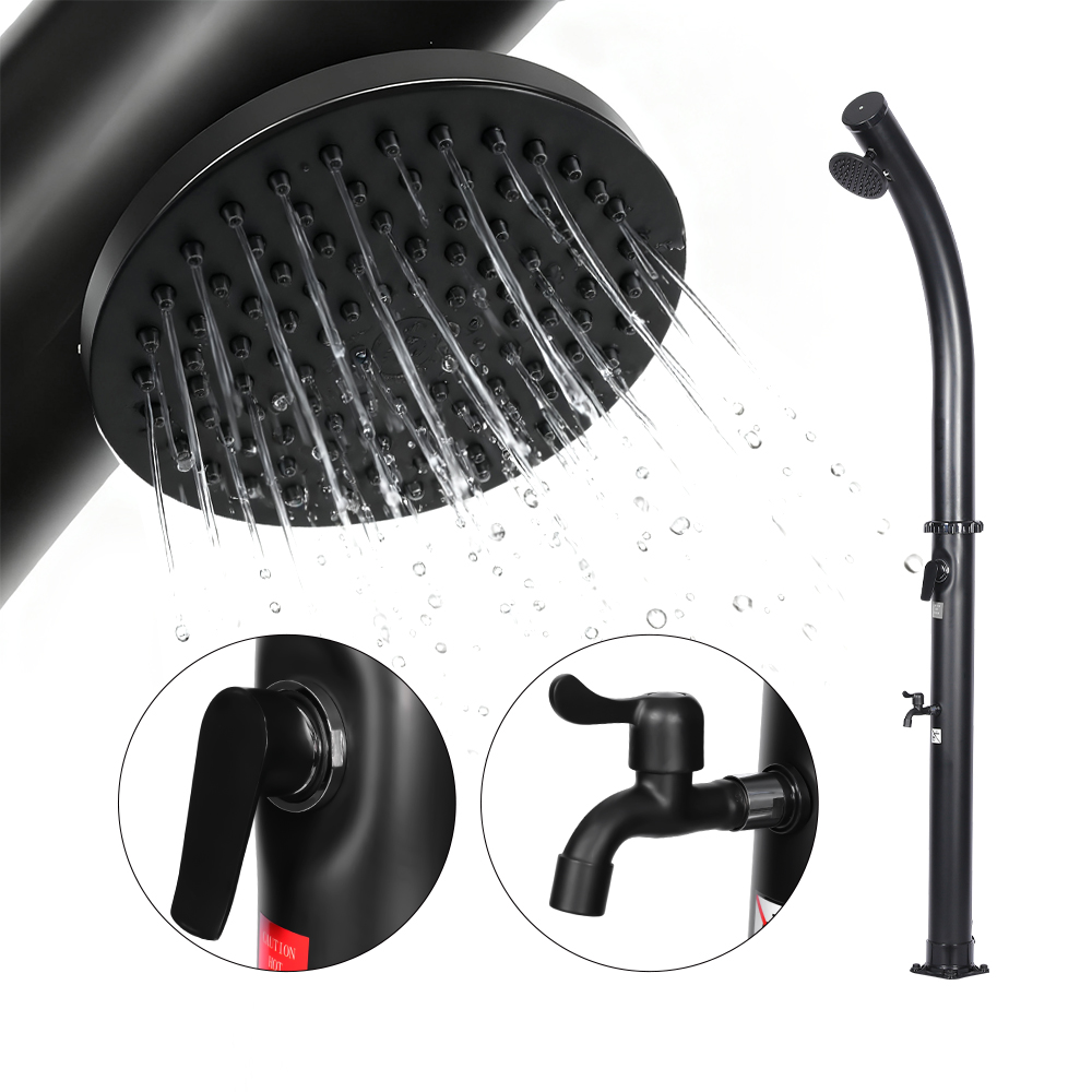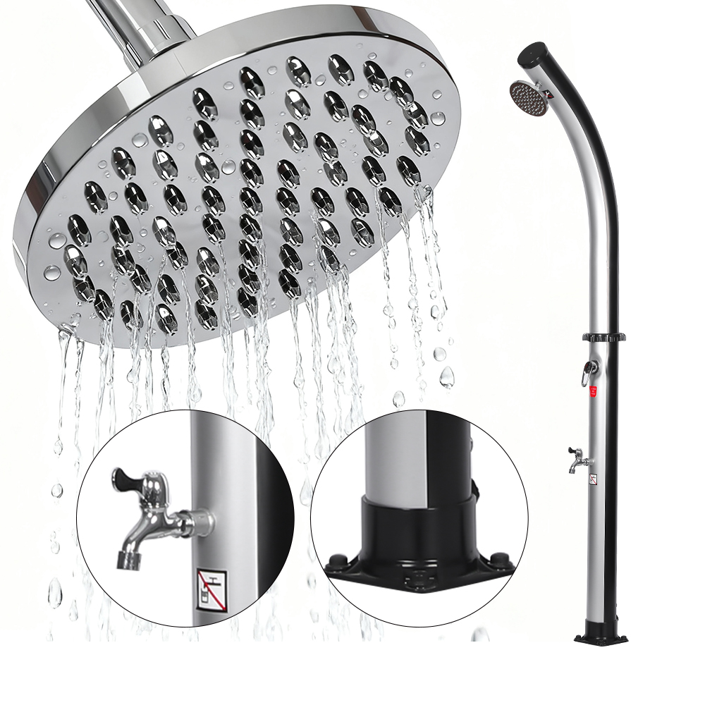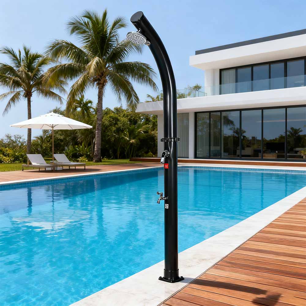 Pagkatapos mapuno ang shower pipe sa pamamagitan ng hose sa hardin, natural na umiinit ang tubig sa araw, at ang pinagsamang fitting ay nagbibigay-daan para sa madaling pagsasaayos sa iyong ginustong temperatura. Dinisenyo para sa versatility, itong LY18L02 18L free-standing bend body outdoor solar pool shower na may shower head ay perpekto para sa beachside outing, poolside relaxation, o countryside getaways, na ginagawa itong isang mahusay na pagpipilian para sa mga hotel, holiday home, at bungalow upang magbigay ng nakakapreskong kaginhawahan kahit saan. Nilagyan din ito ng maginhawang koneksyon sa hose para sa walang hirap na pagpuno at isang drain plug para sa mabilis na pag-alis ng laman, na tinitiyak ang ligtas at madaling paghahanda para sa pag-iimbak sa taglamig.