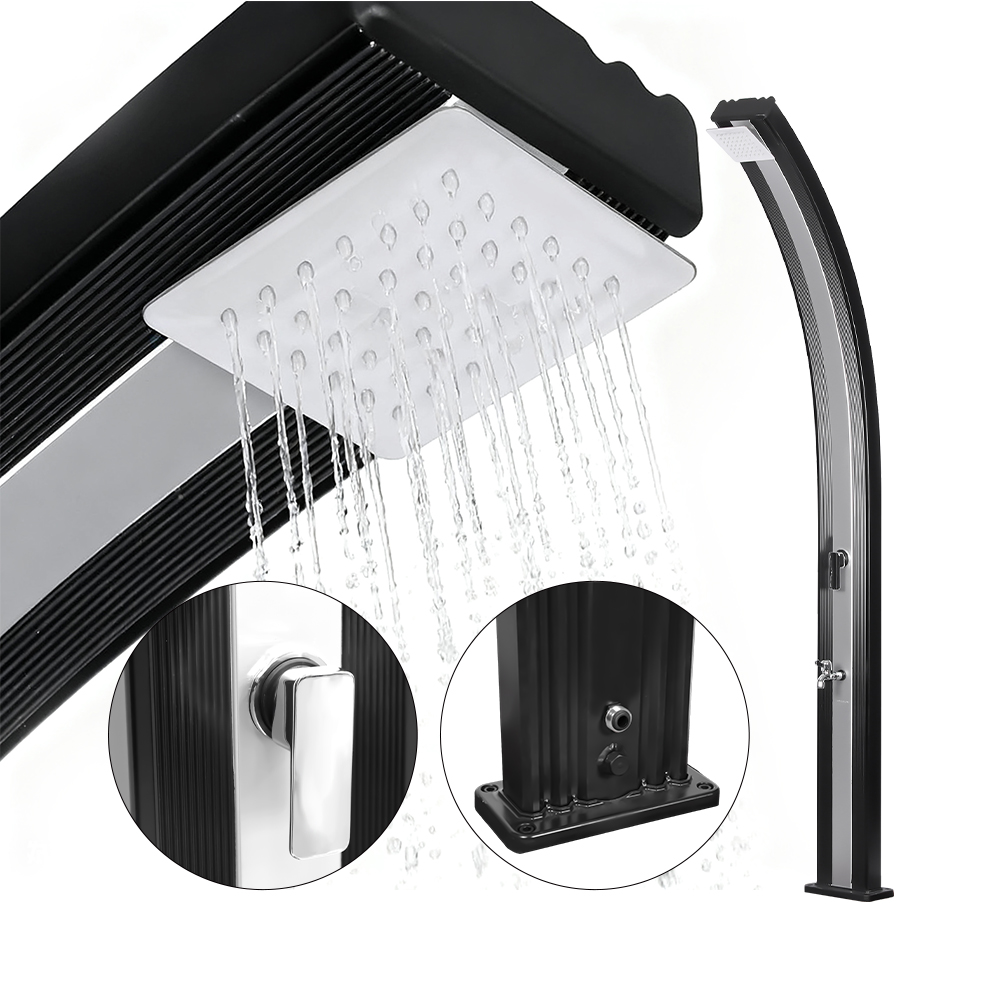 Itong LY30L01 aluminum bent outdoor swimming pool solar shower ay nagtatampok ng 30-litro na aluminum shower pipe, na nagbibigay ng sapat na tubig para sa kumportable at kasiya-siyang karanasan sa shower, sa hardin man, sa tabi ng pool, o saanman. Nagbibigay-daan ang single-lever mixer tap para sa mabilis at madaling pagsasaayos ng temperatura ng tubig, na nagbibigay-daan sa iyong madaling itakda ang perpektong temperatura ayon sa gusto mo, na nagpapahusay sa pangkalahatang karanasan ng user. Ang aluminum shower pipe ay hindi lamang nagbibigay ng sapat na kapasidad ngunit nag-aalok din ng mahusay na tibay at thermal conductivity, na ginagawang mas mahusay at maginhawa ang LY30L01 aluminum bent outdoor swimming pool solar showering.