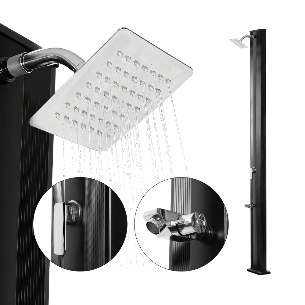 Ang LY30L02 outdoor rain shower head single-lever shower stand na ito ay nagtatampok ng 30-litro na aluminum shower pipe, na nagbibigay ng sapat na tubig para sa kumportable, nakakapreskong karanasan sa shower, na ginagawa itong perpekto para sa paggamit sa hardin o sa labas. Ang single-lever mixer tap ay nagbibigay-daan para sa mabilis at madaling pagsasaayos ng temperatura, na nagpapahintulot sa mga user na ayusin ang temperatura ng tubig sa kanilang gustong setting. Nagtatampok ang malaking rain shower head ng pinagsamang ball joint na umiikot nang 180°, na nagpapaganda ng cooling effect at nagpapasimple sa pag-install, para sa karagdagang kaginhawahan at ginhawa.