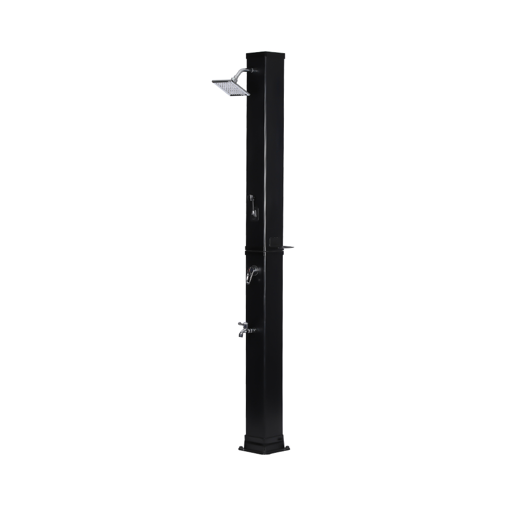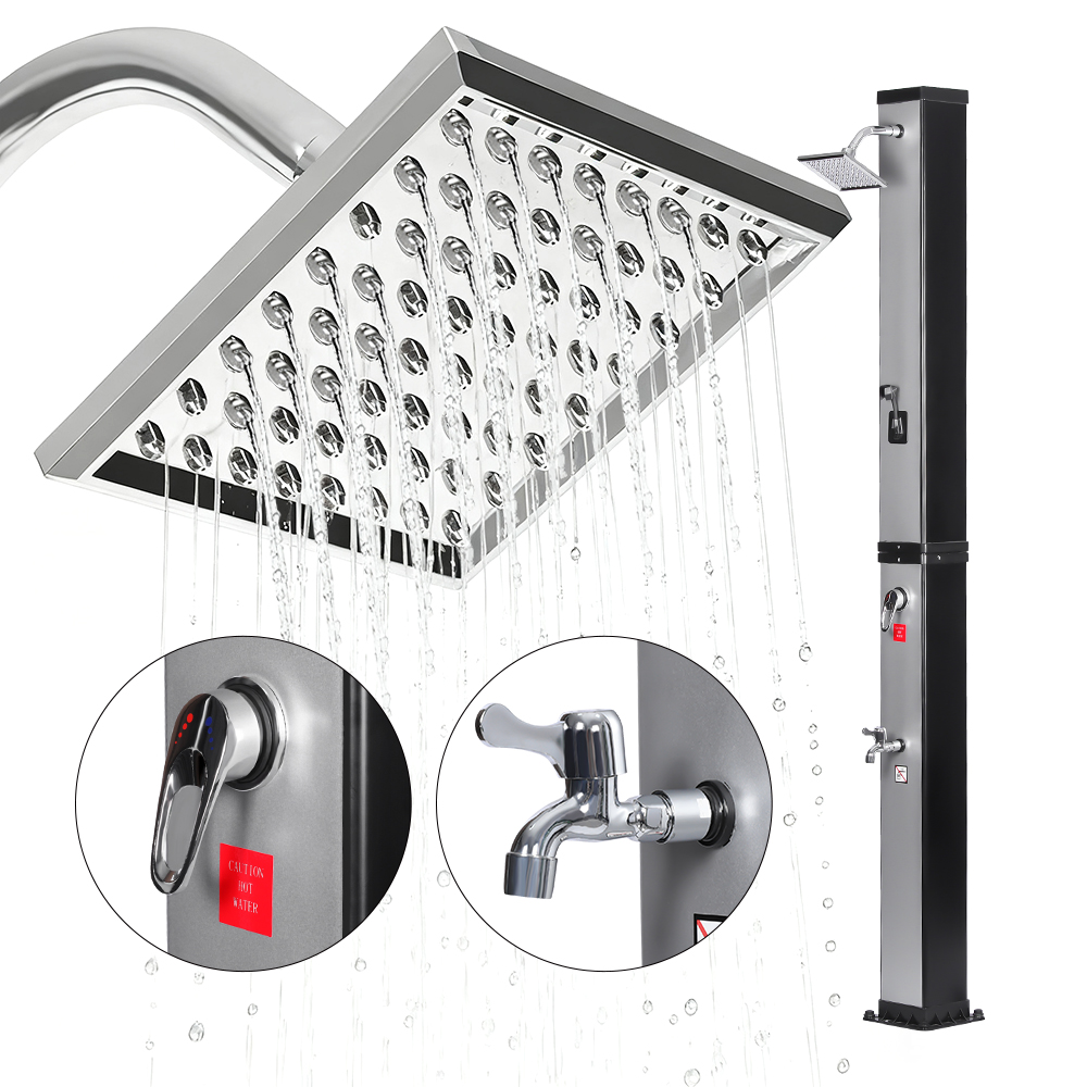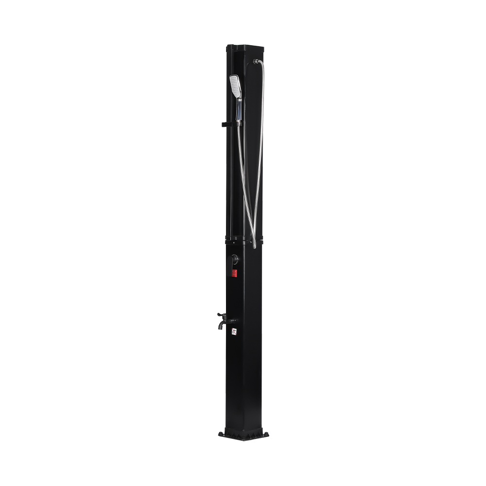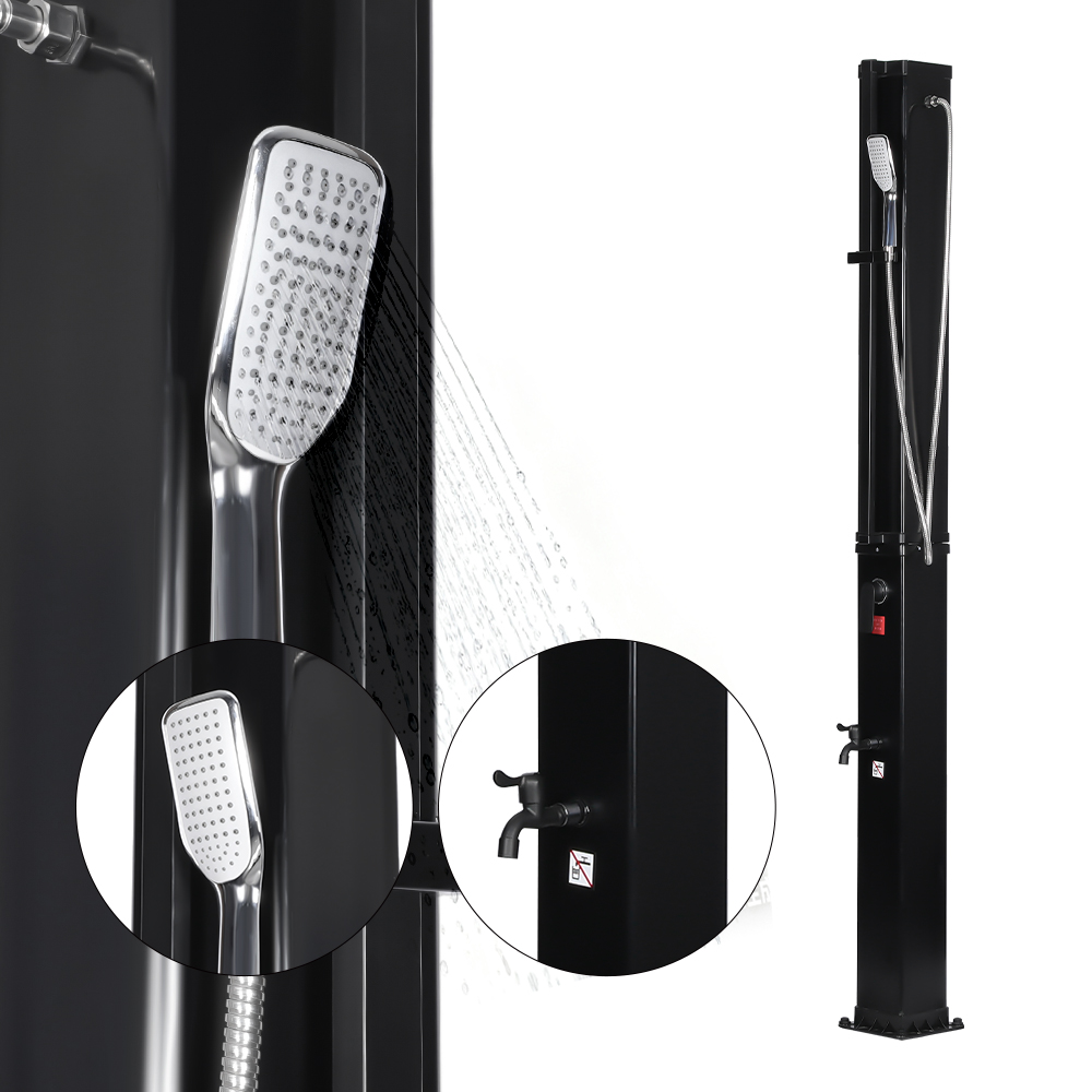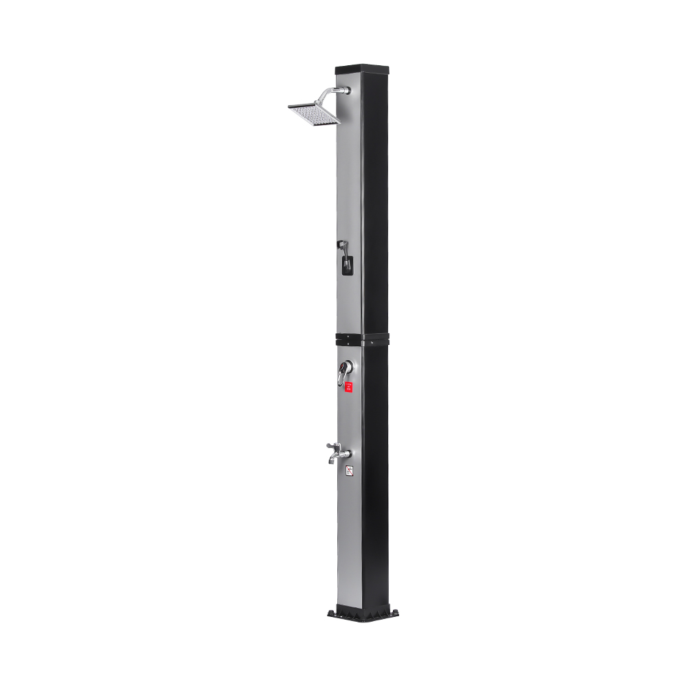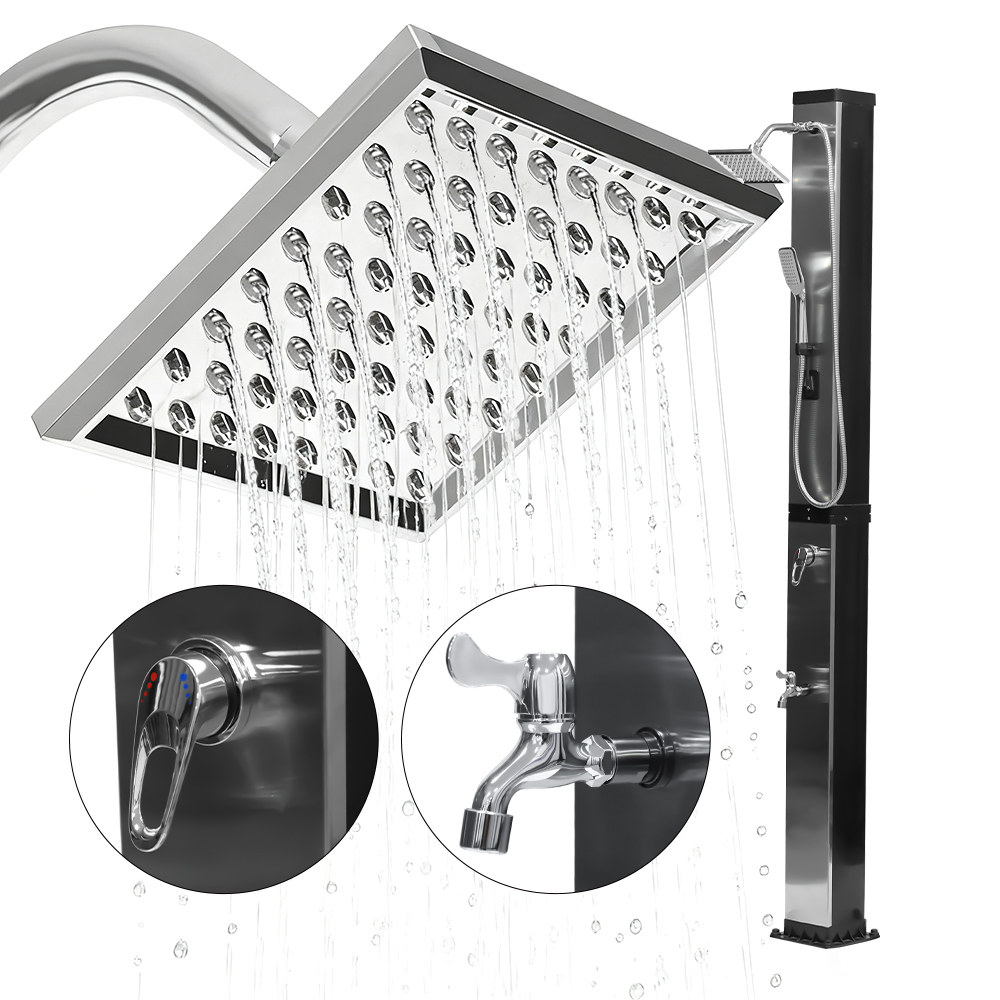Ang LY35L07 multifunctional large-capacity solar shower na ito ay gumagamit lamang ng sikat ng araw upang magpainit ng tubig hanggang 60°C, na nagbibigay ng isang paraan ng pagtitipid sa enerhiya at kapaligiran upang masiyahan sa panlabas na paliligo. Ang pagpuno nito ay simple—ikonekta lamang ang isang karaniwang hose sa hardin sa pasukan, at ang shower pipe ay mabilis na nakahandang gamitin. Ang isang built-in na metal na istante ay nag-aalok ng isang maginhawang lugar para sa pag-iimbak ng shower gel at iba pang mahahalagang bagay, habang ang mga butas sa paagusan sa base ay tinitiyak na ang tubig ay umaagos nang mahusay, na pinananatiling tuyo at malinis ang lugar. Dinisenyo nang may iniisip na versatility, ang solar shower na ito ay perpekto para sa iba't ibang setting, maging sa beach, sa tabi ng pool, sa isang holiday home, hotel, o bungalow. Ang nababaluktot na istraktura nito ay nagbibigay-daan dito upang umangkop sa iba't ibang kapaligiran.