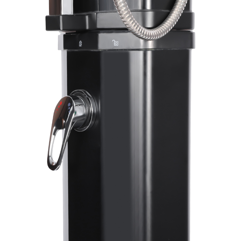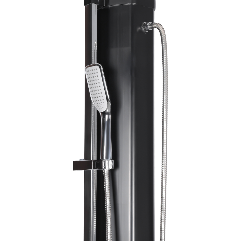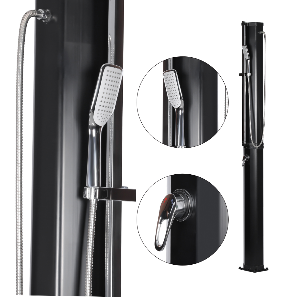 Ang LY35L08-HB na ito na matatag at mahusay na malaking kapasidad na garden solar shower ay mahusay na gumagana gamit ang sikat ng araw. Ang malaking 35-litrong shower pipe nito ay nagpapainit ng tubig sa humigit-kumulang 60°C sa sapat na sikat ng araw. Ang pag-refill ay simple, hindi nangangailangan ng kuryente, at madaling magawa sa pamamagitan ng pagkonekta sa isang karaniwang hose sa hardin. Ang malaking rain showerhead nito ay nagbibigay ng kumportableng karanasan sa paglamig, at ang pinagsamang ball joint nito ay nagbibigay-daan dito na umikot hanggang 180° para sa iba't ibang anggulo. Ang pag-install ay napaka-maginhawa din. Ang pangkalahatang istraktura ay gawa sa matibay, UV-resistant na plastik, na epektibong makatiis ng pinahabang pagkakalantad sa labas. Mabilis na nadidisassemble ang showerhead para sa madaling transportasyon sa pagitan ng mga lokasyon o imbakan sa panahon ng off-season. Tinitiyak ng matibay na baseng metal ang katatagan at kaligtasan kapag na-install, na nagbibigay-daan sa iyong masiyahan sa komportableng panlabas na shower sa iyong hardin, sa tabi ng pool, o sa campsite.