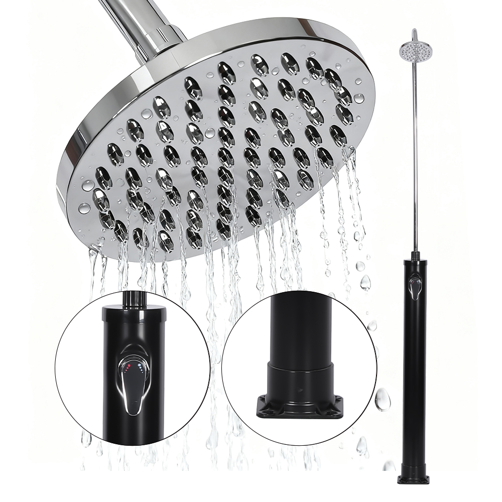 Ang LY08L02 8L swimming pool na ito na panlabas na solar garden shower ay isang perpektong solusyon para sa panlabas na paggamit, maging sa hardin, sa tabi ng pool, o sa mga camping trip. Pinapatakbo lamang ng sikat ng araw, nagtatampok ito ng 8-litro na shower pipe na nagpapainit ng tubig hanggang 60°C, nang hindi nangangailangan ng kuryente. Ang system ay idinisenyo upang maging user-friendly, na may single-lever metal mixer tap na pinaghalo ang mainit na tubig mula sa shower pipe na may malamig na tubig mula sa garden hose, na nagbibigay-daan para sa maayos at tuluy-tuloy na pagsasaayos ng temperatura. Tinitiyak ng matibay na baseng hindi kinakalawang na asero na ang unit ay nananatiling matatag at ligtas sa lugar, na nagbibigay ng maaasahang pagganap para sa iyong mga pangangailangan sa panlabas na tubig. Ikonekta lamang ang isang karaniwang hose sa hardin upang punan ang shower pipe at tangkilikin ang mainit na tubig nasaan ka man.